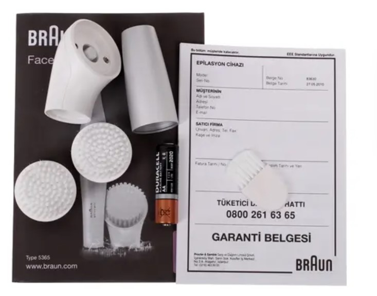 адаптер для щеточки, батарейка, документация, защитная крышка, насадка, сменная щеточка, щетка для очистки
