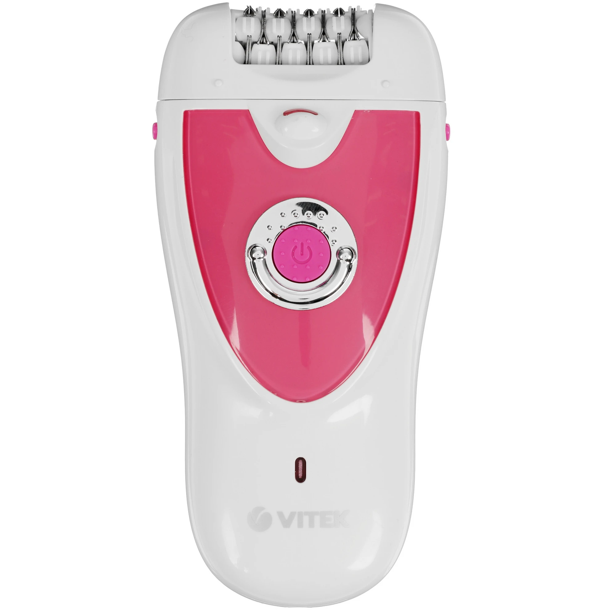 Эргономичный и надежный эпилятор Vitek VT-2244 в компактном корпусе бело-розового цвета позволит в домашних условиях избавиться от волосков на различных участках тела без раздражений и болезненных ощущений. Плюсом этой модели является возможность работы не только от электросети, но и от встроенного аккумулятора, что позволит брать прибор с собой в любое путешествие. В конструкции устройства присутствует светодиодная подсветка, чтобы от вашего взора не ускользнул ни один волосок на обрабатываемом участке кожи.