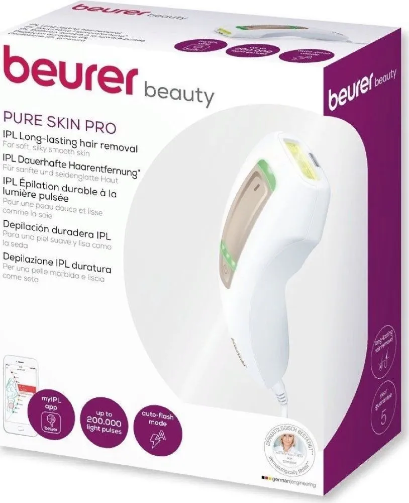 Электрический бытовой прибор световой эпиляции, Бесплатное приложение beurer MyIPL, составление индивидуального плана процедур — профессиональное применение в домашних условиях До 200 000 световых импульсов