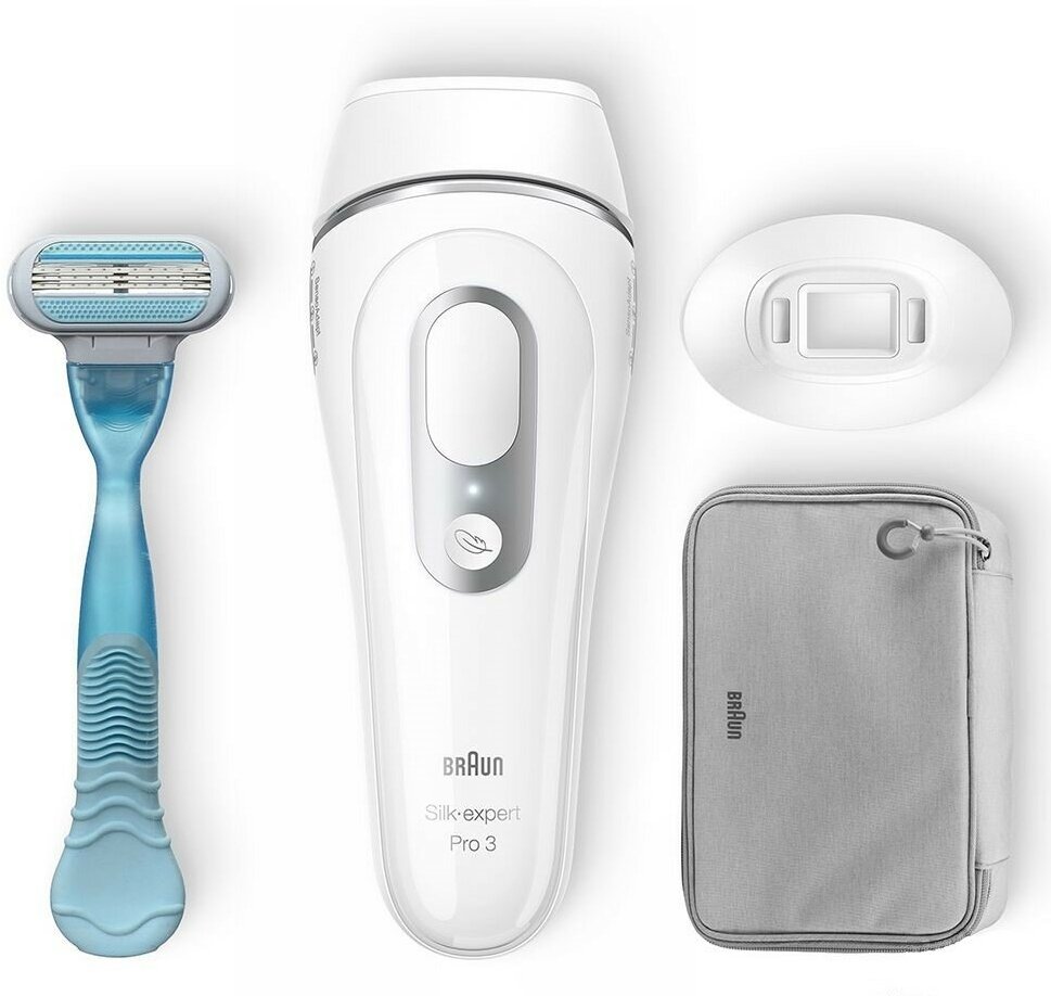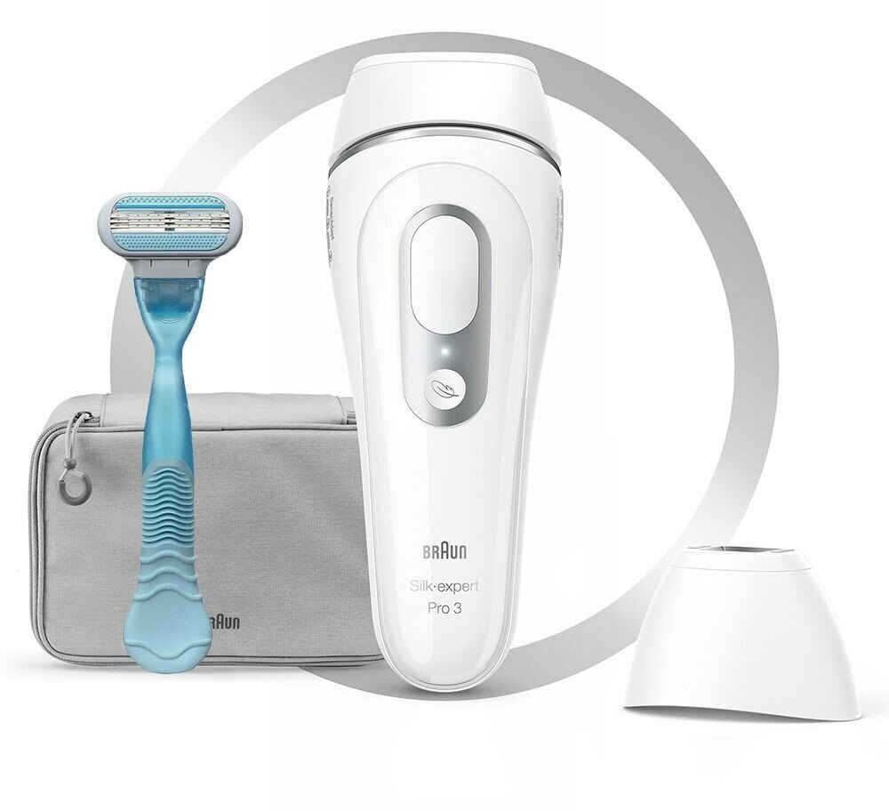 Silk·expert Pro 3 со стандартной насадкой, 1 дополнительная прецизионная насадка, 1 бритва Venus Extra Smooth, 1 сумка на молнии
