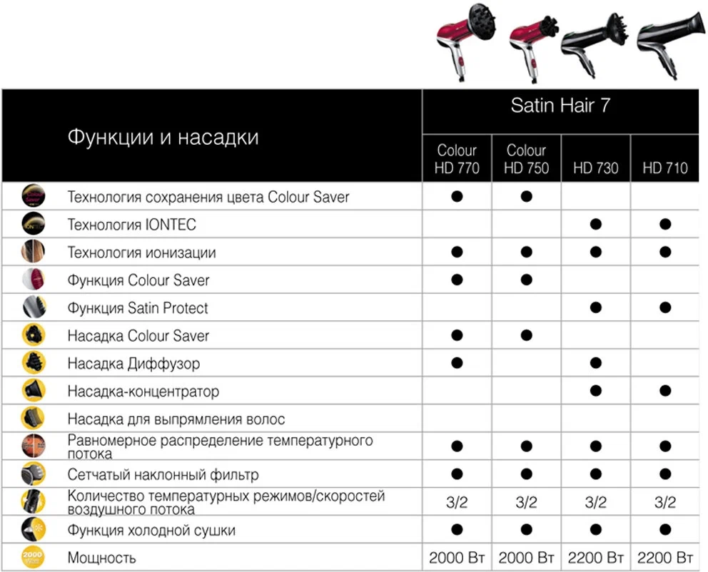 Фен Braun HD730 с функцией ионизации IONTEC с уникальной системой Satin Protect: простое нажатие кнопки ограничивает температуру до 70 C, сохраняя силу воздушного потока. Это обеспечивает 100 %-ую защиту от перегрева и повреждения волос. Миллионы активных ионов борются со статическим электричеством, возникающим у обычных фенов. Фен для волос Braun Satin Hair 7 с функцией ионизации IONTEC делает волосы более ровными, что усиливает блеск, прядь за прядью.