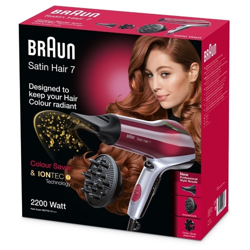 Фен Braun, специально разработанный для завивки тонких окрашенных волос, защищает их от пересушивания и обеспечивает подходящую температуру. В результате окрашенные волосы дольше будут выглядеть здоровыми и сохранят свой насыщенный цвет. Для создания блестящих локонов или выпрямленных волос рекомендуется использовать фен Braun Satin Hair 7 Colour вместе со стайлером для завивки волос Satin Hair 7 Colour или вместе со стайлером для выпрямления волос Satin Hair 7 Colour.