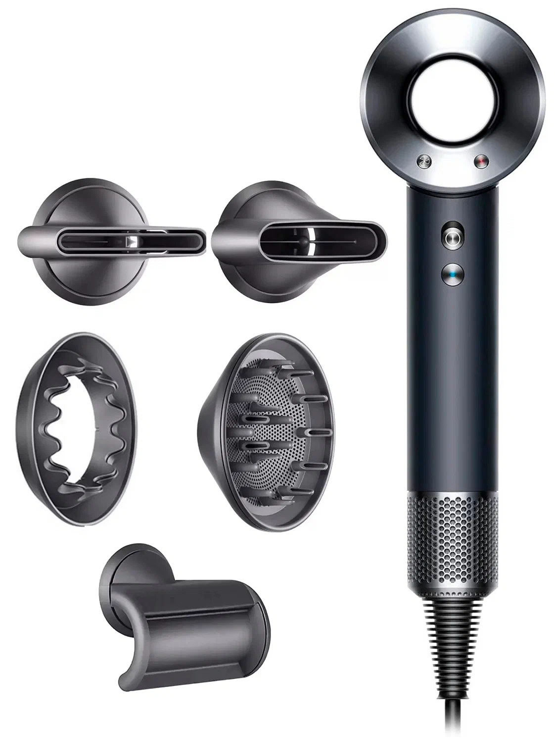 фен, насадка-концентратор 2 шт (широкий и зауженный профиль), диффузор, насадка для бережного высушивания, насадка для непослушных волос, инструкция