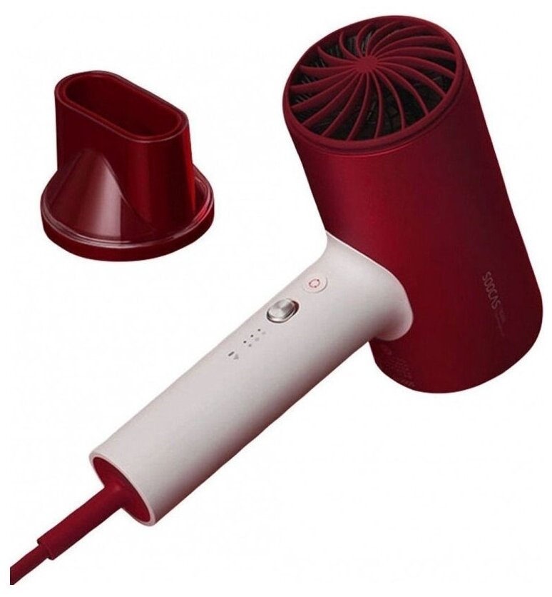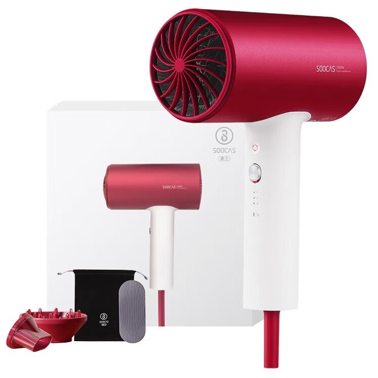 создание воздушного потока основано на пяти горячих и трех холодных струях; материал: Aluminum alloy; напряжение: 210-240 В; скорость двигателя - 20 000 об/мин, 6 лопастей; уменьшенные ячейки сетки фена