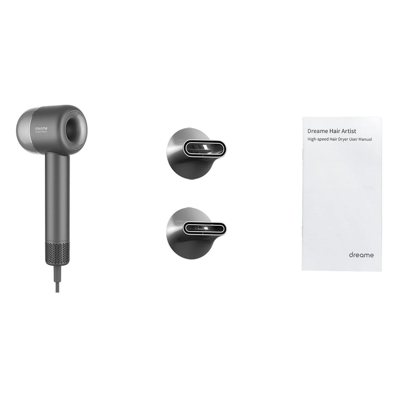 Фен Dreame AHD5-GD0, серый — компактная и легкая модель размером 25,5х8х9,8 см и весом 585 г, что делает ее удобной и для домашнего использования, и для поездок. Корпус выполнен из пластика, мощность — 1400 Вт.