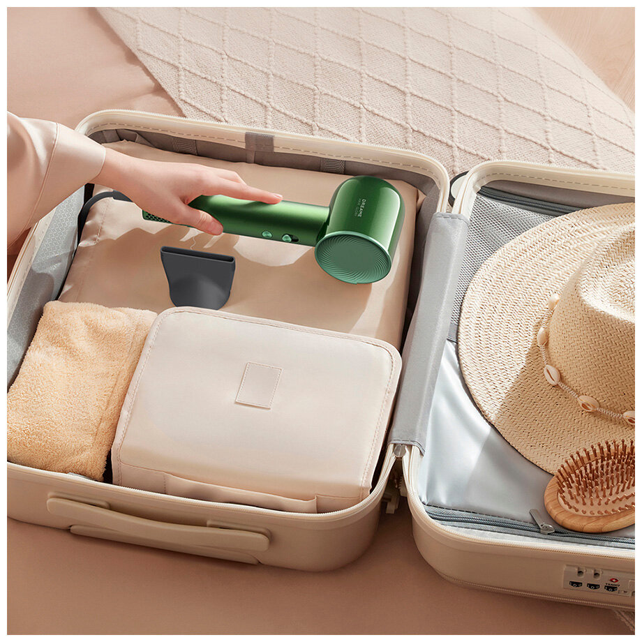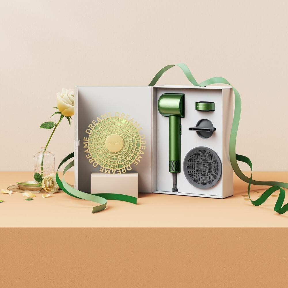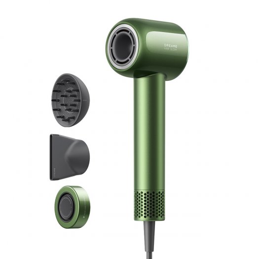 Фен Dreame Hair Glory High-Speed Hair Dryer Master Green (AHD10) имеет мощность 1400 Вт и поставляется с двумя насадками. Диффузор оптимален для создания прикорневого объема. Концентратор используется для выпрямления прядей во время сушки волос. При перегреве модель с предохранителем отключается автоматически. Устройство с низким уровнем шума имеет компактный размер - 25,5х7,6х8,2 см.