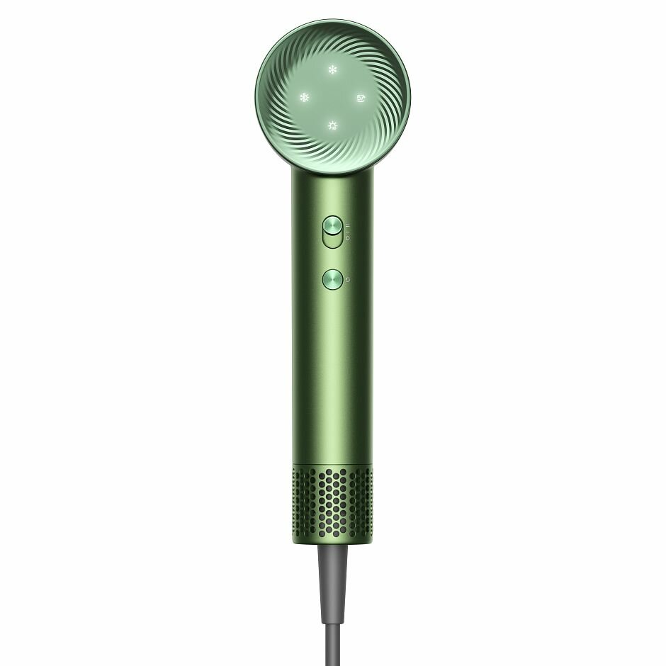 Фен Dreame Hair Glory High-Speed Hair Dryer Master Green (AHD10) оснащен механическими переключателями для коррекции температуры и интенсивности обдува, которые расположены на ручке. Частота воздушного потока составляет 70 л/сек. Для фиксации укладки используется функция холодного обдува. Режим ионизации предотвращает накопление статического электричества в волосах при частом расчесывании за счет двойного платинового концентратора ионов.