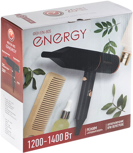 Фен Energy EN-805, 1200-1400Вт, 2 скорости, холодный воздух, концентратор - 1шт