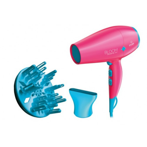 Если вы устали подолгу сушить и укладывать волосы, то ускорить этот процесс вам поможет фен GA.MA Flow ION Bloom. Его корпус выполнен в форме пистолета, и его очень удобно держать, а ярко-розовый цвет с бирюзовыми вставками поднимет ваше настроение. Невероятно быстрый поток воздуха, который высушит ваши волосы всего за несколько минут, обеспечивает высокая мощность в 2200 Вт. Мотор типа АС способен долгое время работать без перерывов и обеспечивает долгий срок службы фена.