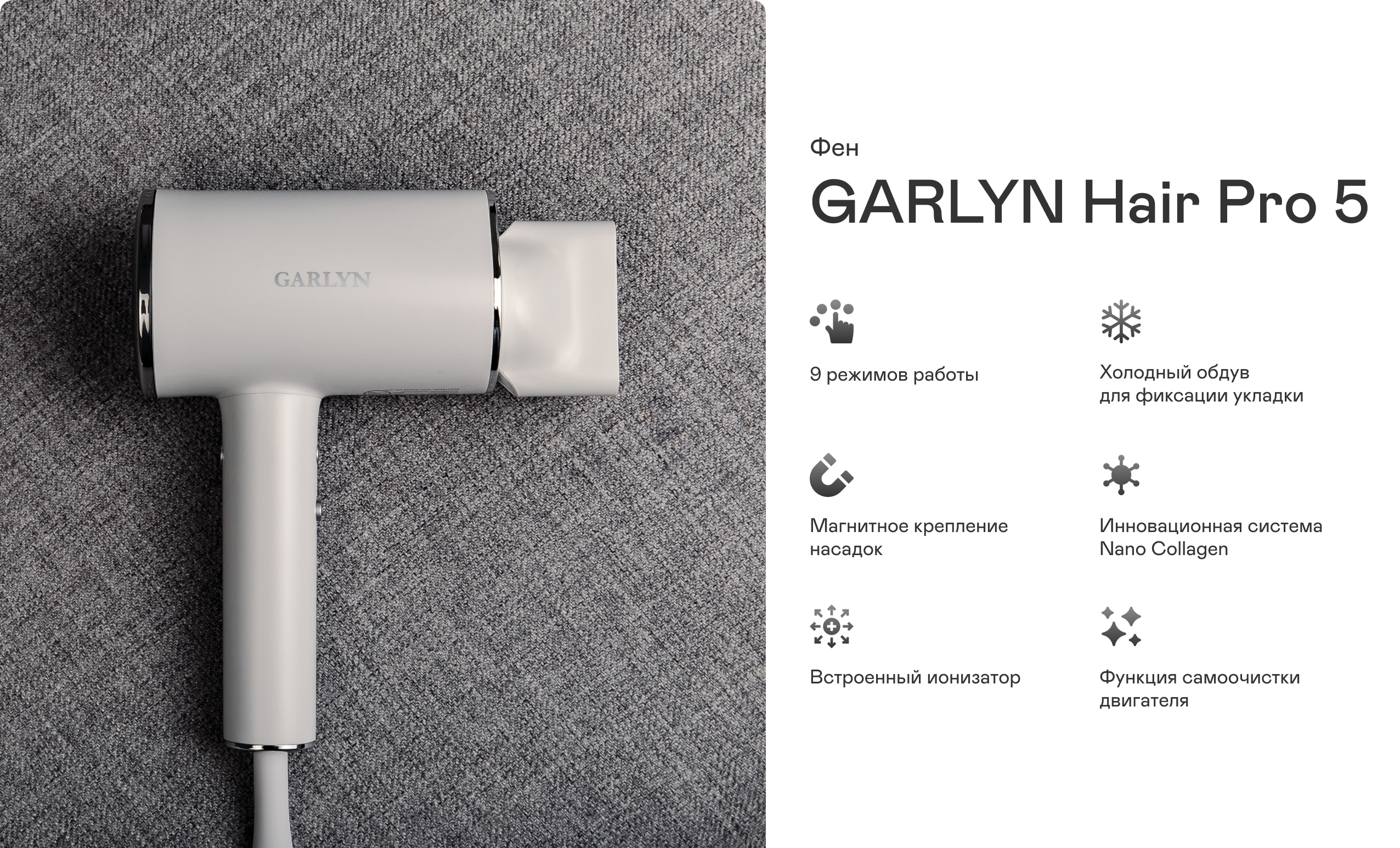 Фен - 1 шт.; Насадка-концентратор - 1 шт.; Насадка-диффузор - 1 шт.; Капсула Nano Collagen - 2 шт.; Руководство пользователя - 1 шт.; Краткая инструкция пользователя - 1 шт.