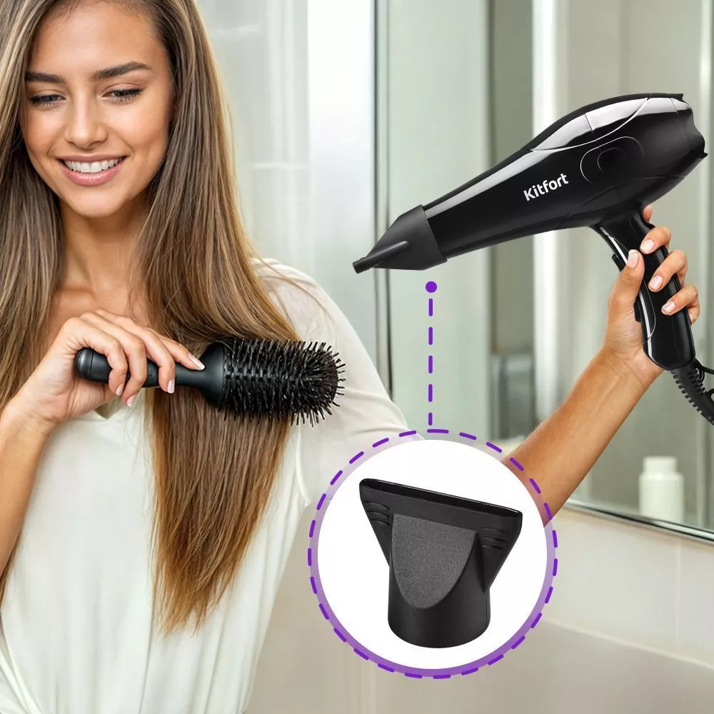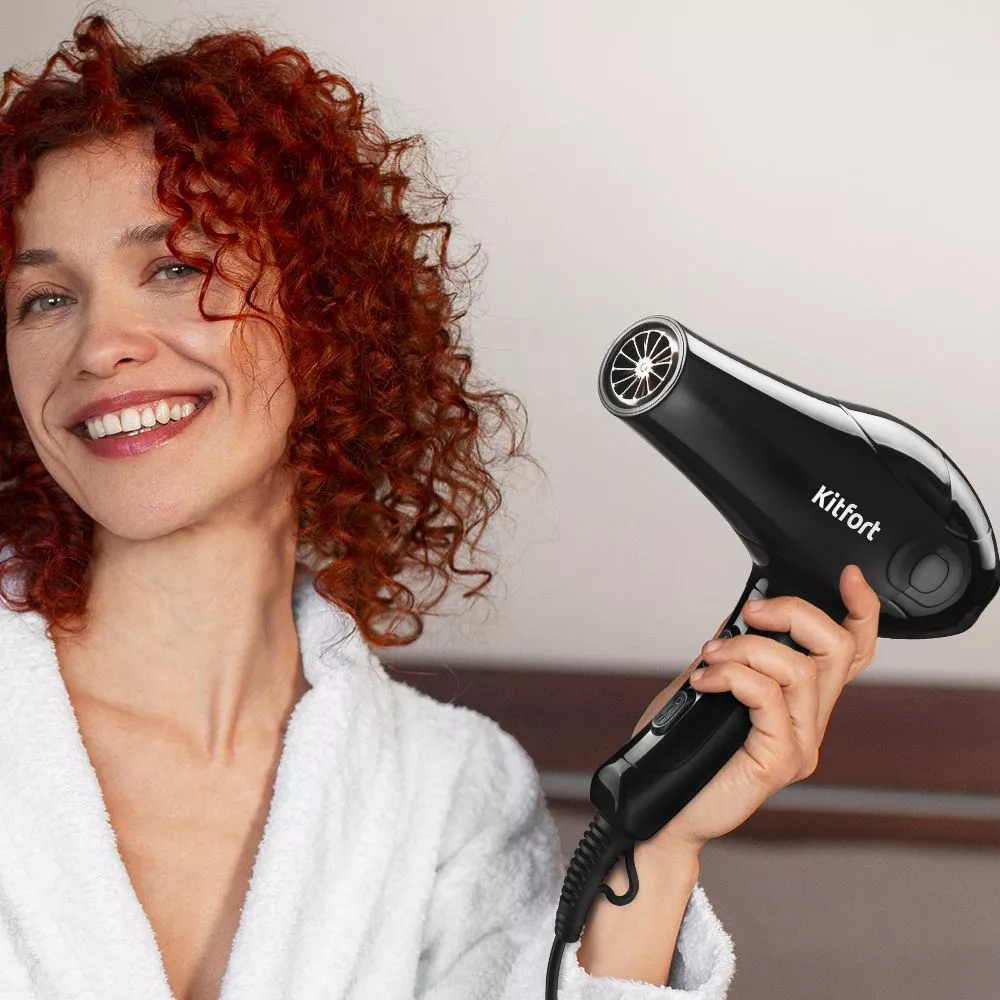 Благодаря фену Kitfort КТ-3207 вы сможете быстро высушить волосы и сделать красивую укладку. Устройство выдаёт направленный поток воздуха, поэтому волосы с ним сушить просто, удобно и очень быстро!