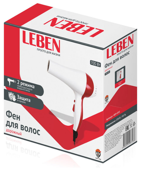 ехнические характеристики Тип фен Мощность 700 Вт Функции подача холодного воздуха Количество режимов 3 Особенности Конструкция петля для подвешивания