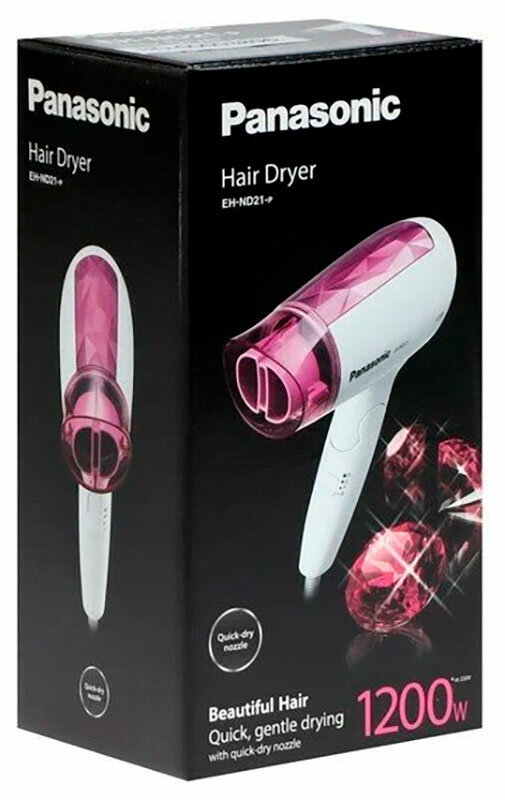 Фен Panasonic EH ND21 - это компактное устройство. Этот фен Panasonic имеет выходную мощность 1200 Вт для быстрой и эффективной работы. Panasonic EHND21 обеспечивает наилучшую производительность и результаты для ваших волос. Этот фен оснащен насадкой для быстрой сушки, которая эффективно впитывает всю влагу ваших волос, обеспечивая идеальные результаты. Это средство безопасно в использовании и не приводит к ломкости или вьющимся волосам. У вас есть свобода выбора интенсивности подачи воздуха с помощью двух настроек "горячий" и одной "холодный". Он разработан таким образом, чтобы обеспечить удобство использования в дороге, и имеет тонкую конструкцию с возможностью складывания. Легкая сушка С помощью этого фена Panasonic вы можете полностью высушить влажные волосы за считанные минуты. Он имеет выходную мощность 1200 Вт для бесперебойной работы и приготовления завтрака. Насадка для быстрой сушки поочередно выдувает сильный и слабый воздух, отделяя каждую прядь волос для достижения эффективных результатов.