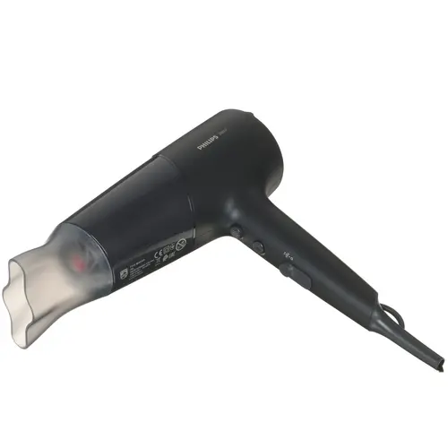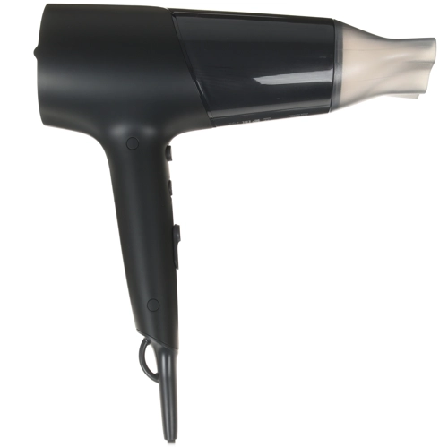 Фен Philips BHD504/00 представлен в элегантном черном корпусе с эргономичной ручкой и небольшой петелькой для подвешивания. Прибор подключается к розетке кабелем длиной 1.8 м. Данная модель поставляется с насадкой-концентратором.
