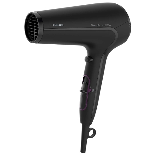 В устройстве предусмотрены три температурных и два скоростных режима, которые помогают сделать процесс сушки наиболее комфортным. Для закрепления причёски реализована функция холодного обдува. Технология Thermo Protect обеспечит постоянную оптимальную температуру сушки волос и их защиту от перегрева. Для укладки тонких прядей в комплект входит узкая насадка.