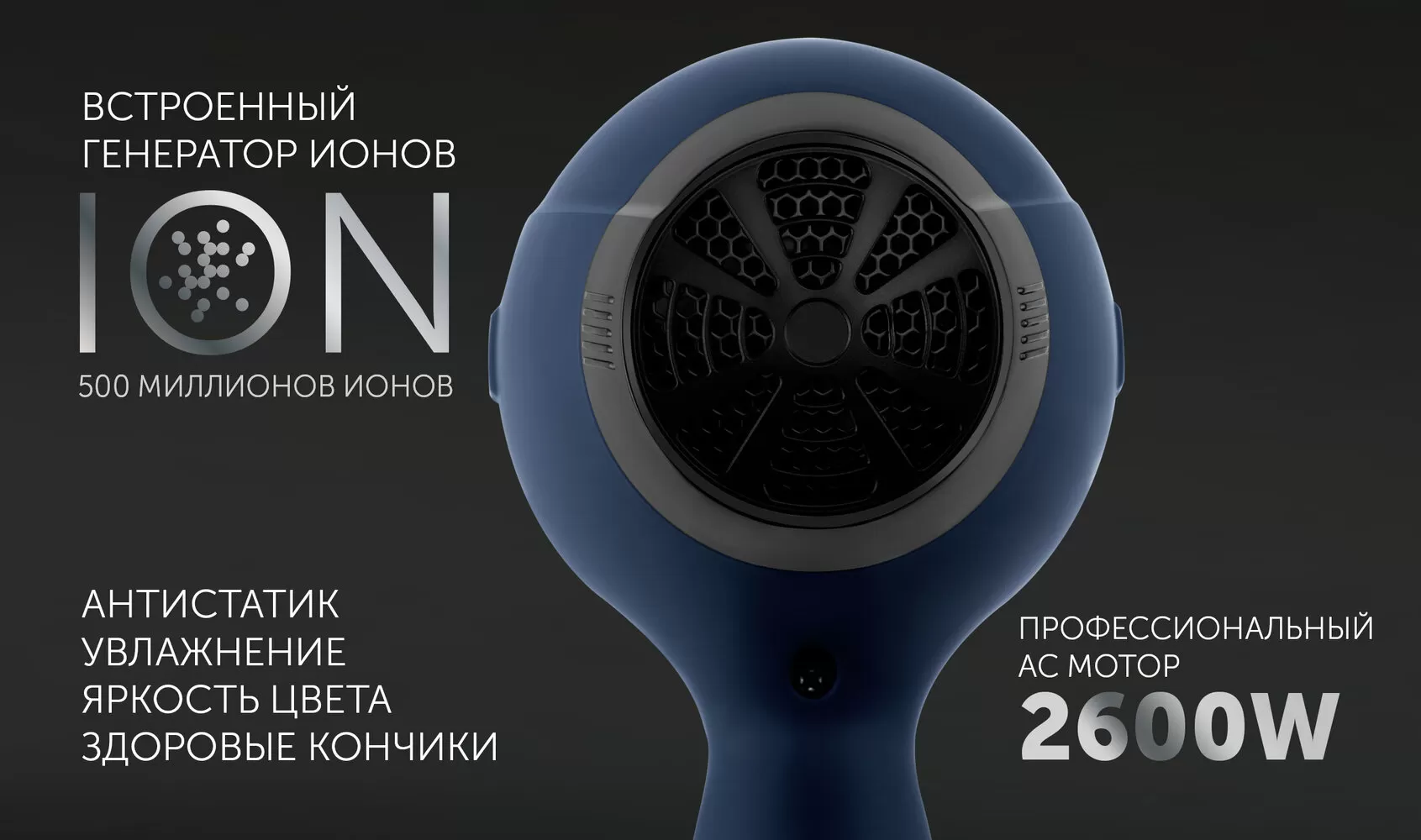 Профессиональный АС мотор увеличивает срок службы фена и создает мощный поток воздуха для быстрого результата сушки.