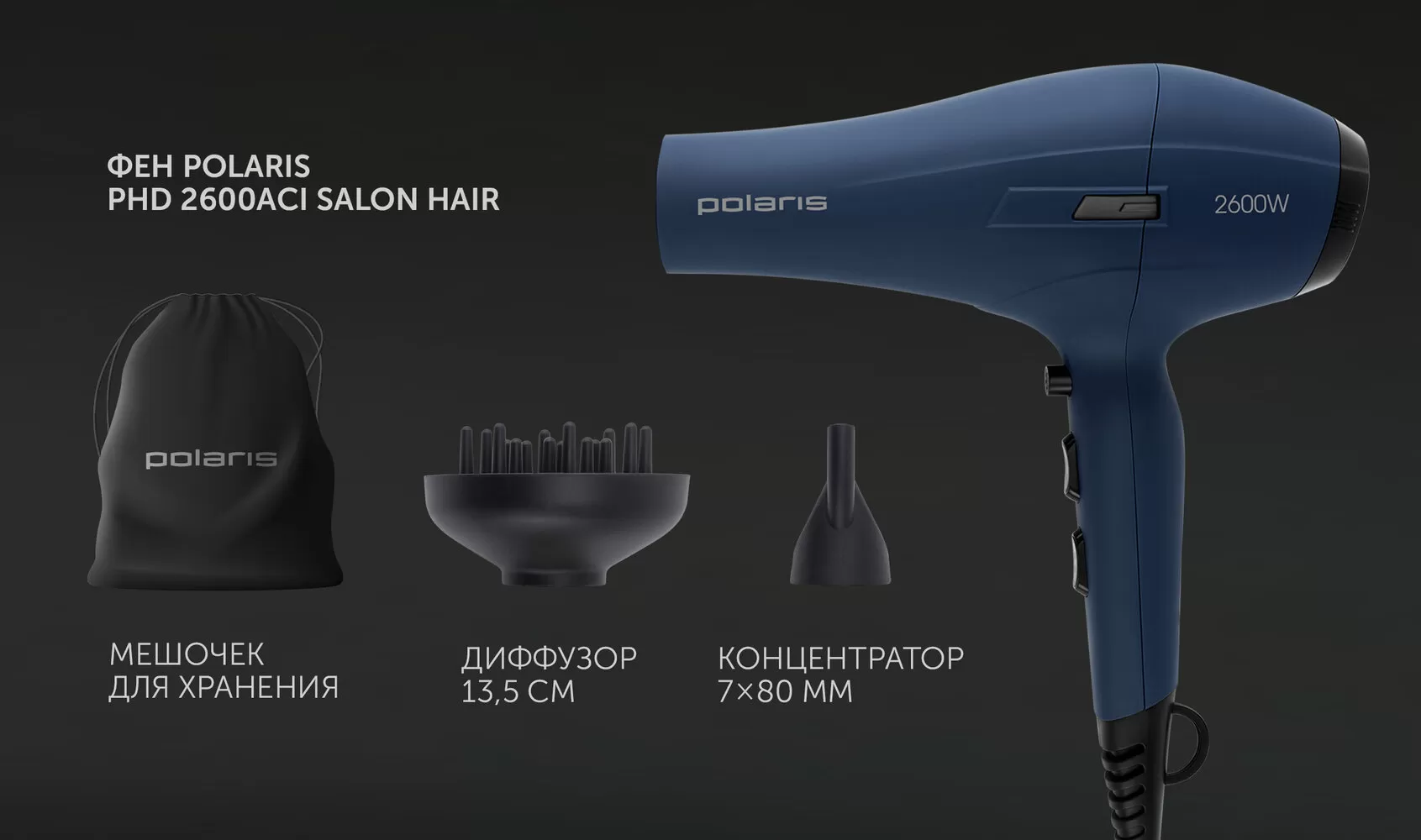 Полноценный мощный фен с мягким покрытием корпуса Soft Touch.
