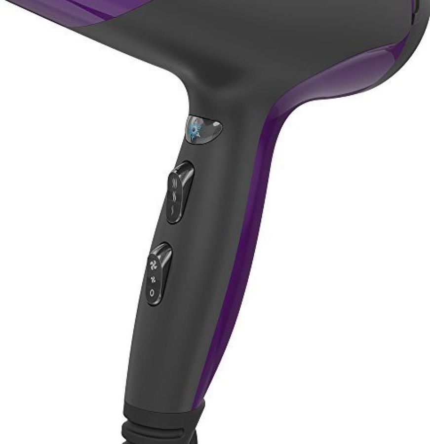 количество скоростей: 2; режимов: 3; насадок: 2шт; ионизация, концентратор; диффузор, длина шнура: 1.8м; мощность: 2200Вт; цвет: фиолетовый и черный