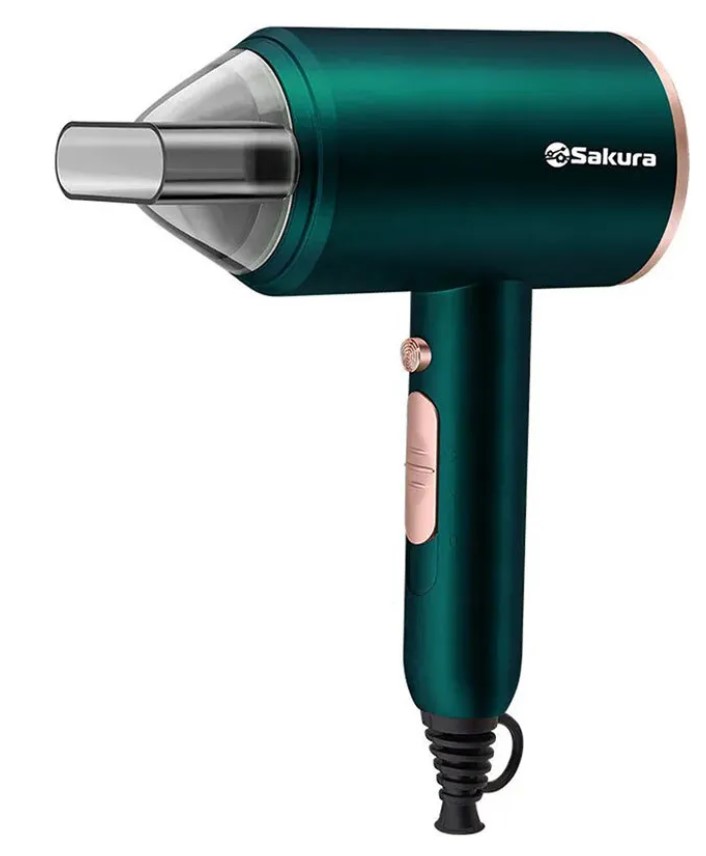 Фен для волос Sakura SA-4045GR имеет мощность 1400 Вт, 2 режима (теплый воздух + средняя скорость, горячий воздух + высокая скорость), кнопка Cool Shot (сушка холодным воздухом), насадка-концентратор, защита от перегрева.