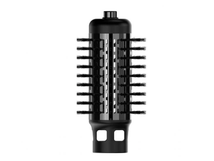 Две вращающиеся насадки разного диаметра, входящие в комплект, позволяют смоделировать практически любую прическу. Насадка Ø38 мм с нейлоновыми щетинками придает волосам блеск, насадка Ø50 мм с комбинированной нейлоновой щетиной и керамическими щетинками мягко распутывает и равномерно распределяет тепло, предотвращая повреждение.