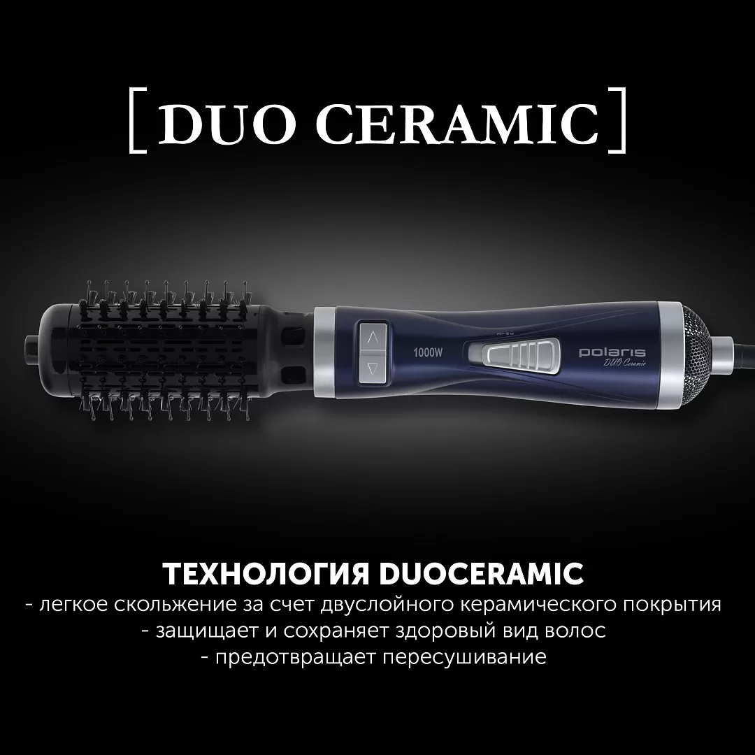 Технология DuoCeramic защищает и сохраняет здоровый вид волос, обеспечивает легкое скольжение за счет керамического покрытия с двумя дополнительными слоями.