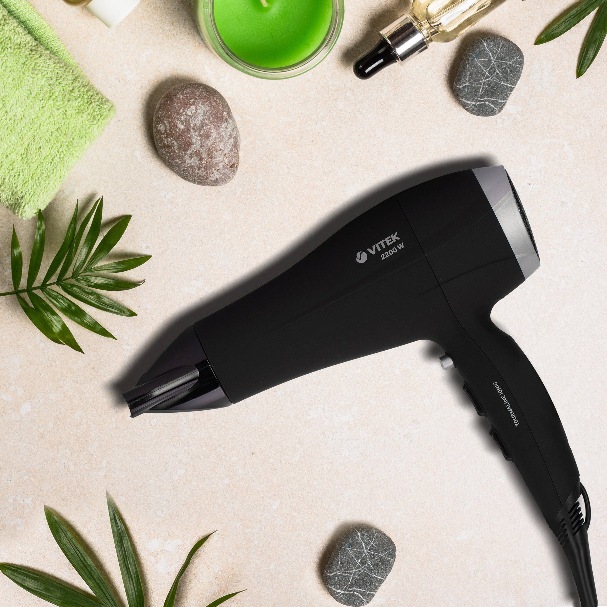 Высушить волосы и уложить их в красивую прическу позволит фен VITEK VT-1302. В нем предусмотрены 3 температурных режима и 2 скорости воздушного потока, а также функция подачи холодного воздуха — для надежной фиксации укладки. Решетка прибора имеет инновационное покрытие Tourmaline Ionic, которое при нагревании образует отрицательные ионы. За счет этого статическое электричество снимается, чешуйки волос буквально «запечатываются», и они выглядят гладкими и блестящими, как шелк. Купить фен VITEK VT-1302 можно как для себя, так и в подарок: прибор не только хорош в работе, но и комфортен в использовании. Держать фен в руках очень приятно, благодаря особому внешнему покрытию Soft-touch. Хранить прибор можно в любом месте, подвесив на стену за специальную петельку. С VITEK жить в большом городе легко и комфортно!