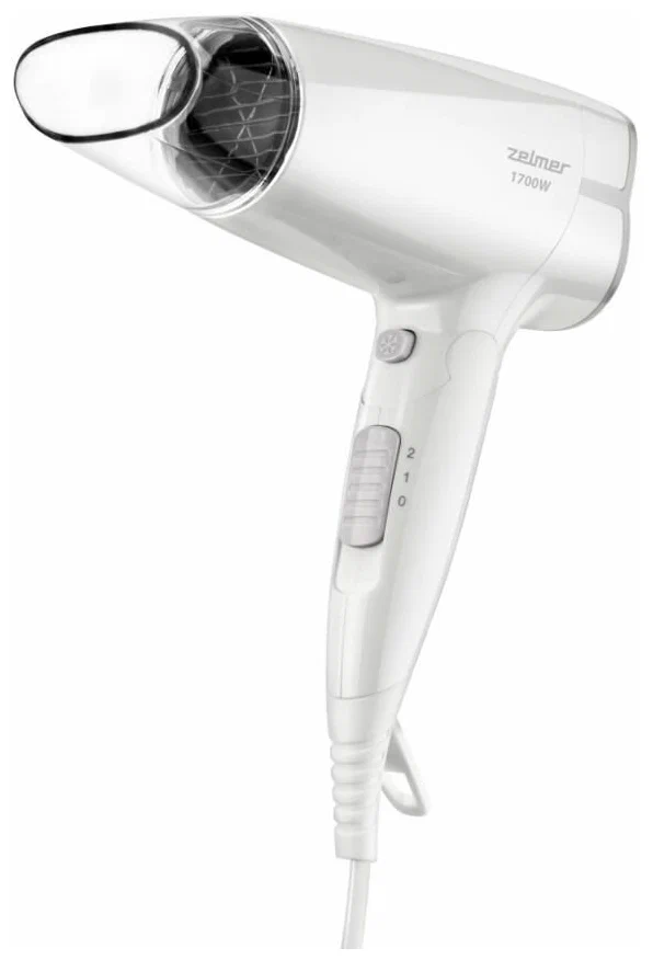Фен для волос Zelmer ZHD8320 компактный и аккуратный помощник для ванной или будуарного столика. На выбор доступно две настройки температуры и две скорости воздушного потока. В любой момент можно включить холодный обдув. В комплекте есть стандартная насадка-концентратор