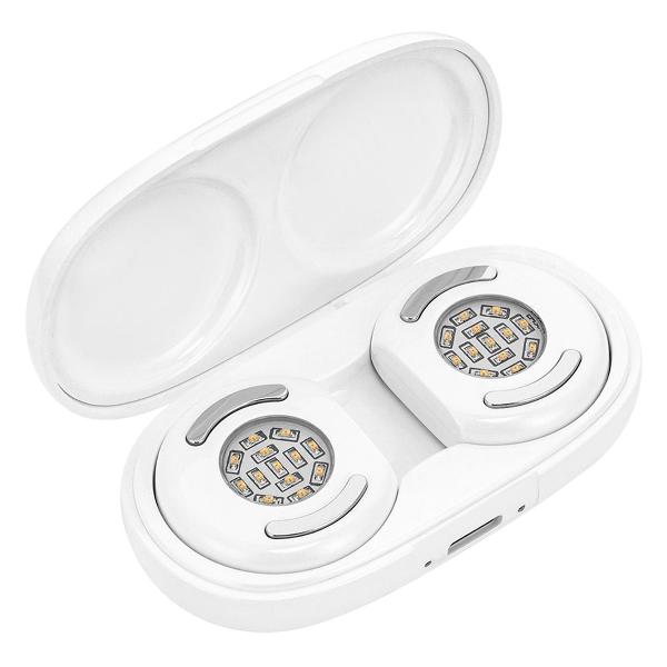 Электронные патчи для глаз KT-3185 способствуют тонизированию кожи вокруг глаз и замедлению появления морщин, помогают избавиться от отёков и темных кругов под глазами.Микротоки укрепляют и тонизируют мышцы вокруг глаз, устраняя дряблость кожи и разглаживая морщины. EMS активирует кровообращение, что ускоряет насыщение тканей кислородом, а также способствует проникновению косметических средств в глубокие слои кожи.Прибор оснащён LED-подсветкой, которая излучает свет в красном спектре. Красное излучение активирует синтез коллагена, эластина и гиалуроновой кислоты. Красный свет способствует расширению сосудов и оптимизирует обменные процессы.Устройство имеет 2 режима работы: непрерывное воздействие EMS-микротоками и импульсное воздействие красным светом. Первый режим активирует синтез коллагена и эластина, второй направлен на массаж и тонизацию мышц вокруг глаз.У прибора два одинаковых патча, на каждом из которых есть кнопка «Вкл/Выкл», что позволяет включать патчи по отдельности. Также на патчах располагаются LED-подсветка, контакты для зарядки и рабочие контакты, которые прикладываются к коже вокруг глаз.Патчи заряжаются, когда установлены в кейс для зарядки. Контакты для зарядки на патчах должны совпасть с контактами для зарядки в кейсе. Патчи можно установить в любой из слотов. Во время зарядки индикаторы зарядки левого и правого патча горят красным.