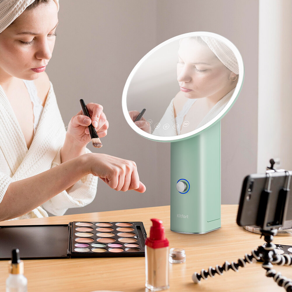 С косметическим зеркалом KT-3170 нанесение макияжа и проведение косметических процедур станет удобнее. Зеркало устанавливается на стол. Благодаря этому ваши руки останутся свободными, вам удобнее будет наносить макияж.