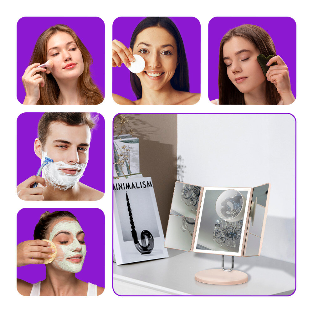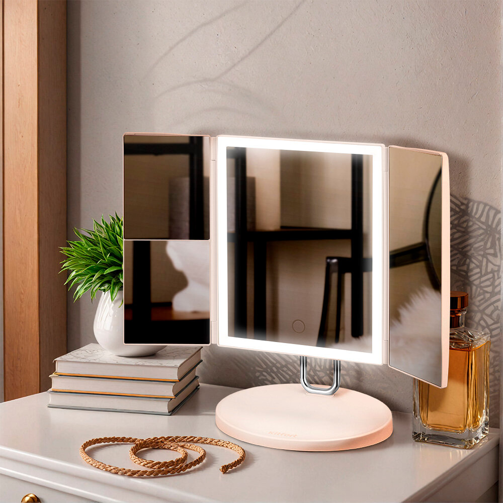 Стильное косметическое зеркало КТ-4120 – это идеальный вариант для каждой девушки, имеет 4 секции с разной степенью увеличения изображения и практичную светодиодную подсветку. Отличный помощник для макияжа и ухода за лицом каждый день!