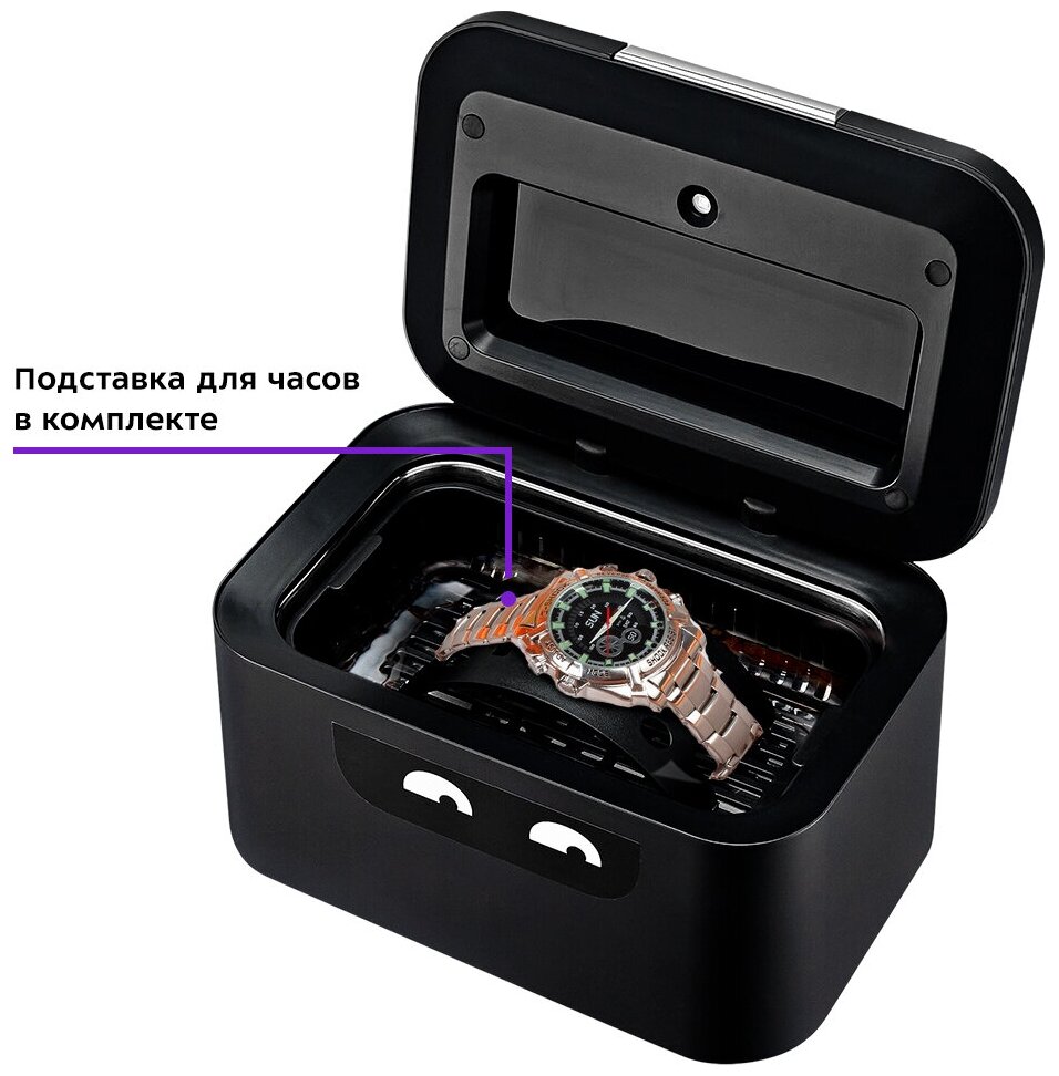 Для безопасности в комплекте к ультразвуковой мойке идёт подставка для часов. Рекомендуется чистить часы, закреплённые на специальной подставке, погружая в воду лишь браслет.
