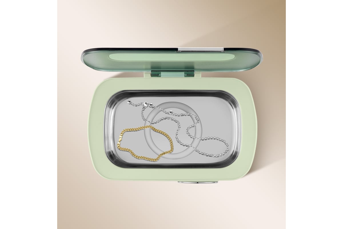 Корпус прибора сделан из пластика, а резервуар, в который помещаются предметы для очистки, из нержавеющей стали. Прозрачная часть крышки позволит наблюдать за процессом очистки.
