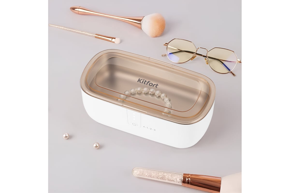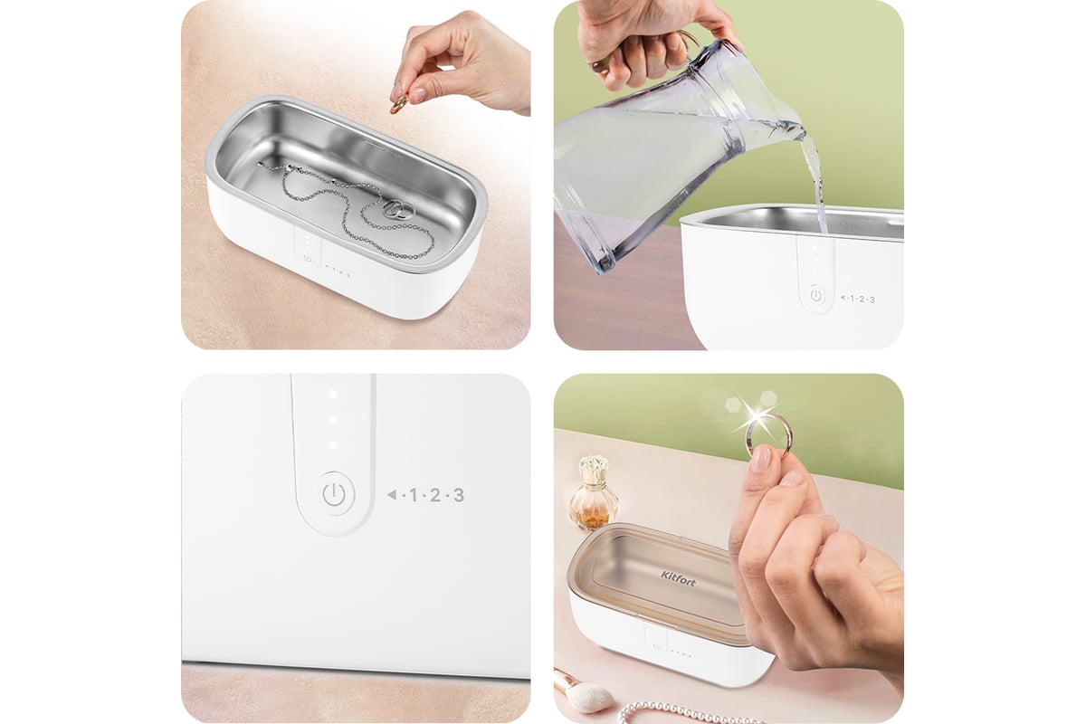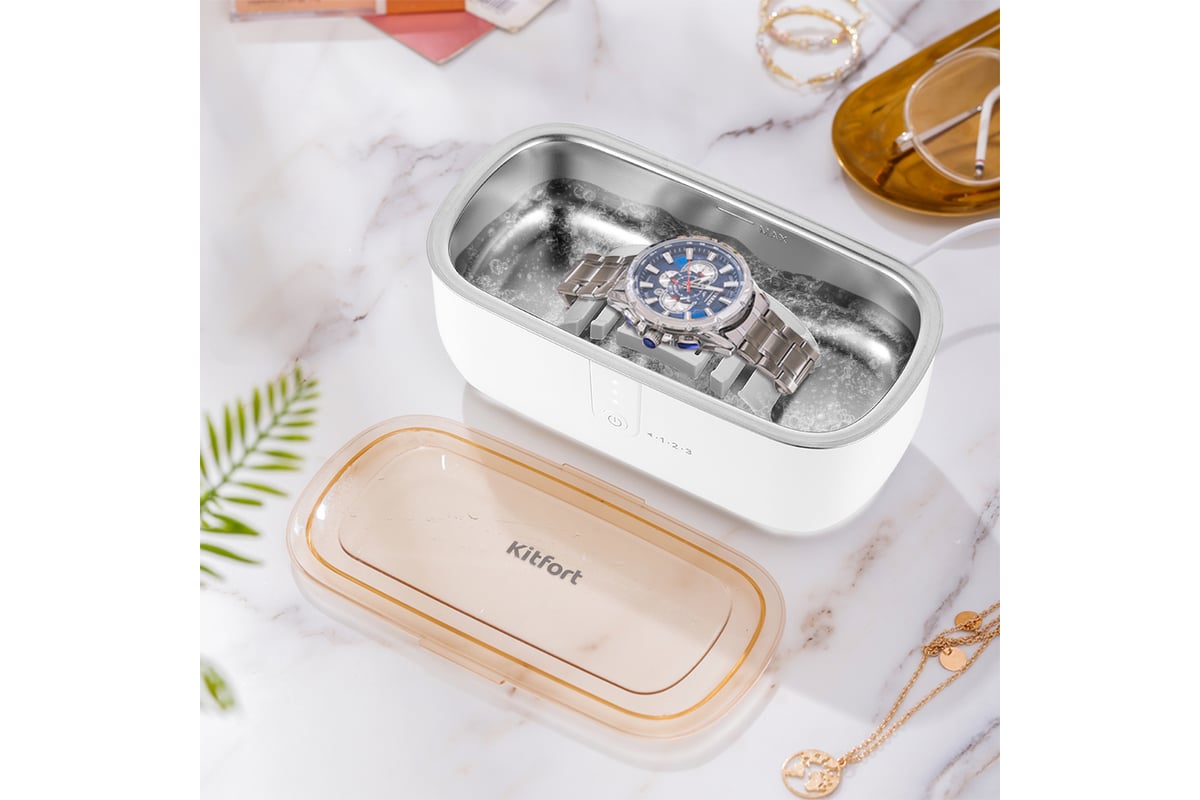 Корпус прибора сделан из пластика, а резервуар, в который помещаются предметы для очистки, — из нержавеющей стали. Прозрачная крышка позволит наблюдать за процессом очистки.