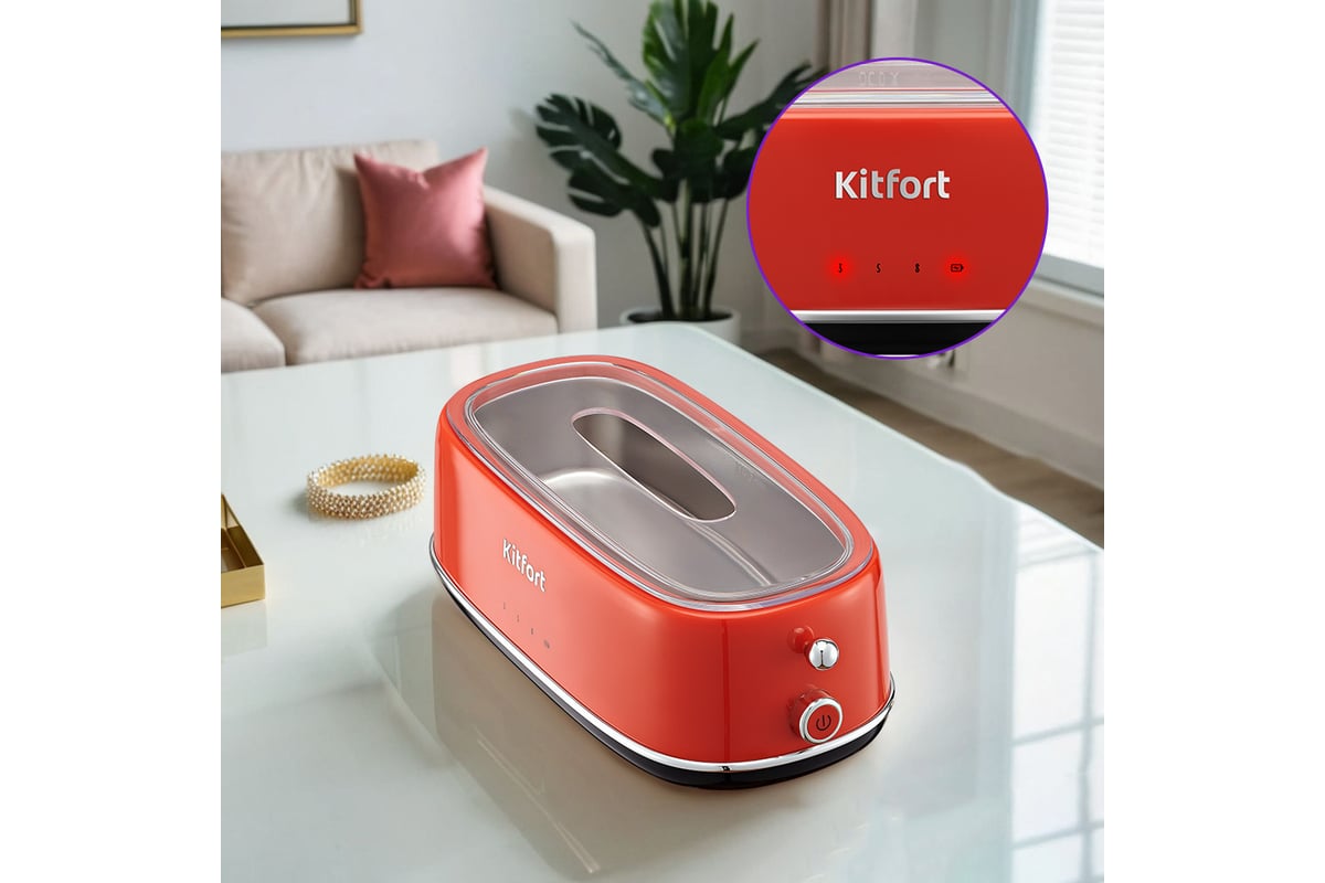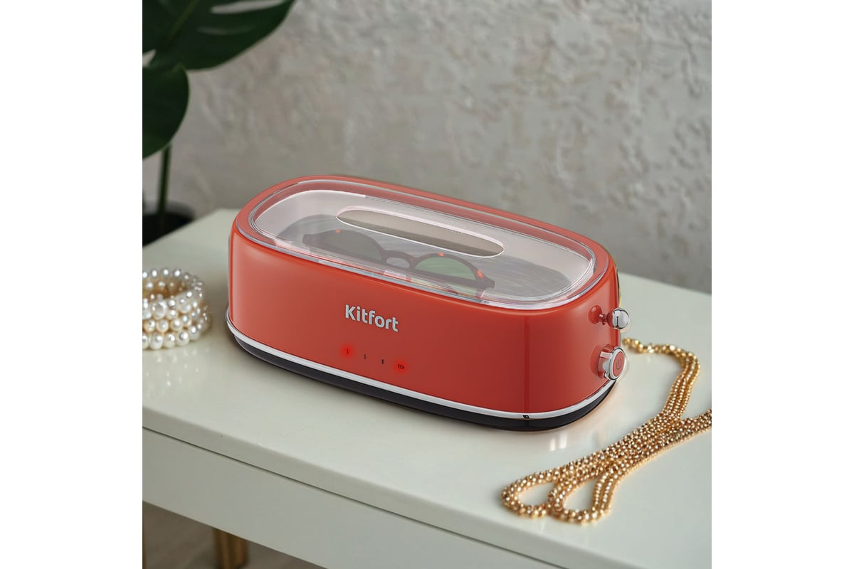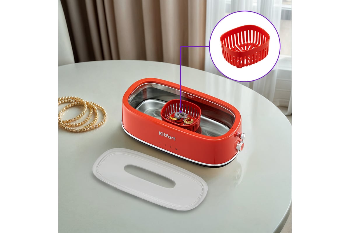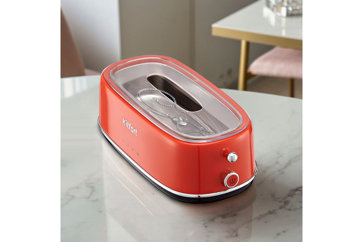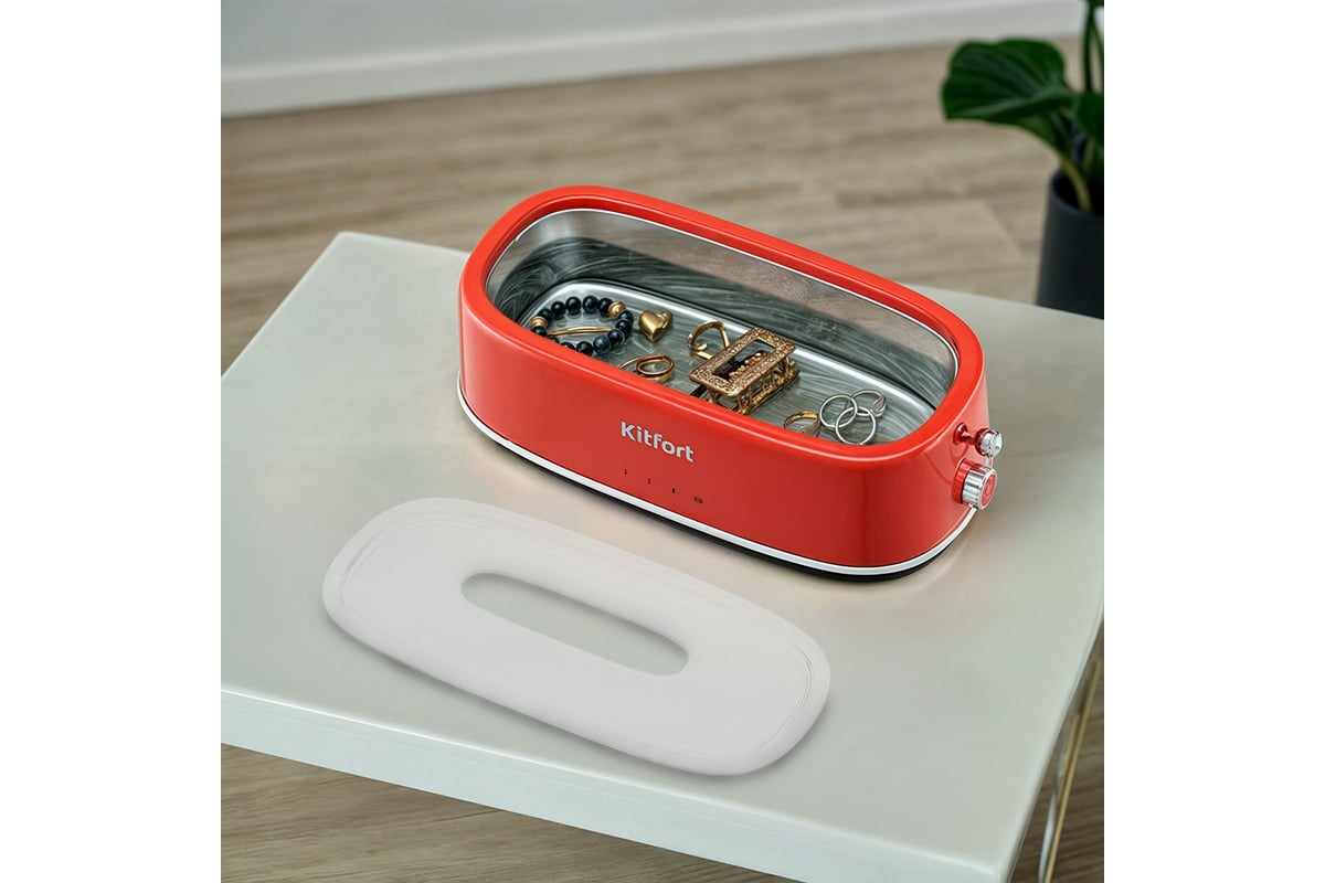 Корпус прибора сделан из пластика, а резервуар, в который помещаются предметы для очистки, — из нержавеющей стали. Прозрачная крышка позволит наблюдать за процессом очистки.
