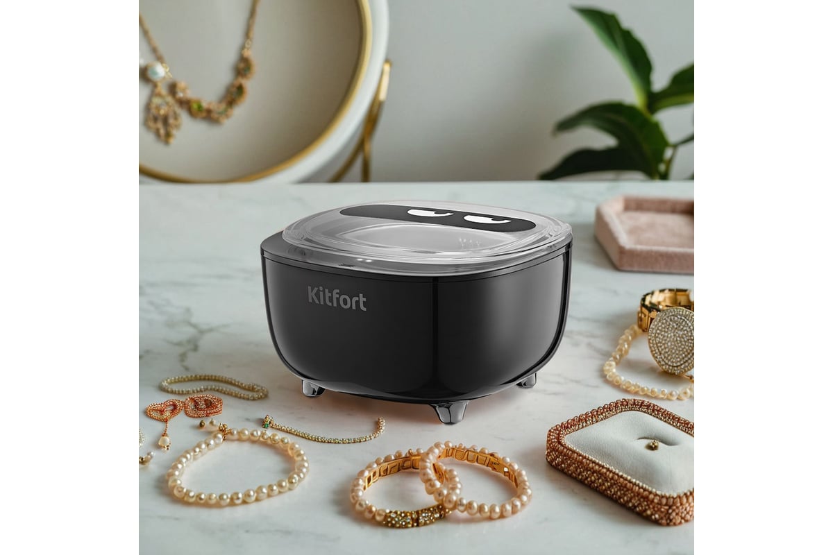 Корпус прибора сделан из пластика, а резервуар, в который помещаются предметы для очистки, — из нержавеющей стали. Прозрачная крышка позволит наблюдать за процессом очистки.