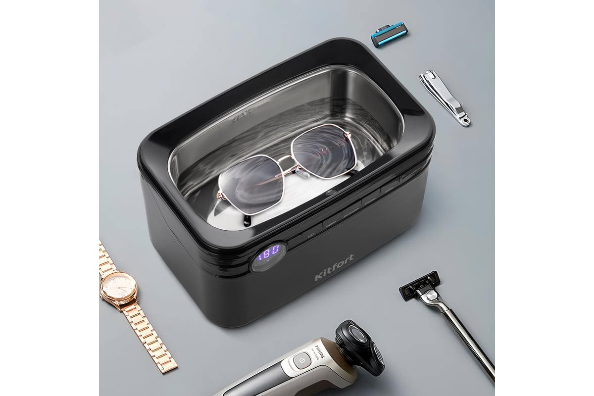 Корпус прибора сделан из пластика, а резервуар, в который помещаются предметы для очистки, — из нержавеющей стали. Через прозрачную крышку вы можете наблюдать за процессом чистки. Благодаря большому размеру вы можете очищать более крупные предметы или много небольших предметов за 1 раз.