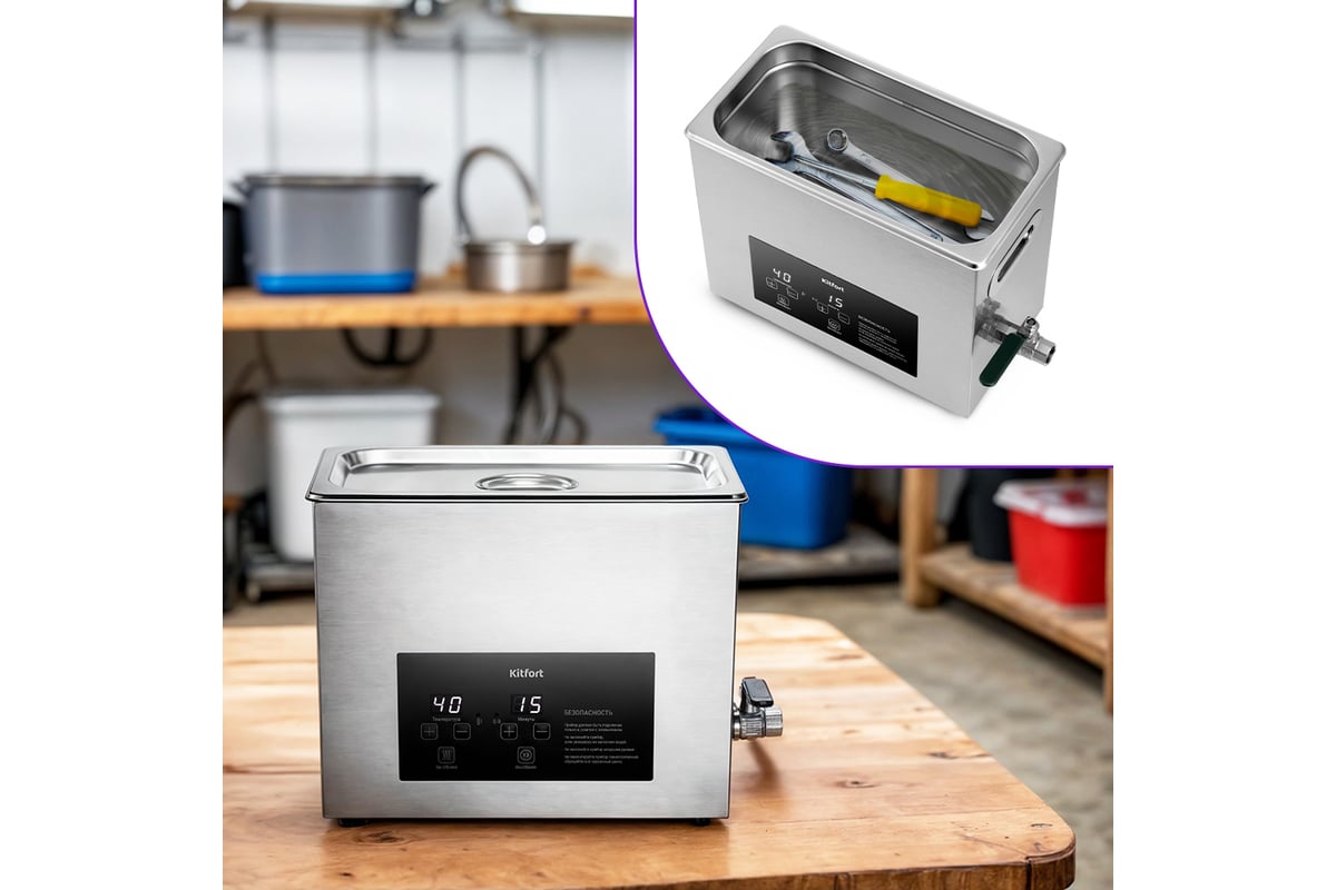 Корпус прибора, крышка и резервуар сделаны из нержавеющей стали. Благодаря большому размеру вы можете очищать более крупные предметы или много небольших предметов за 1 раз.