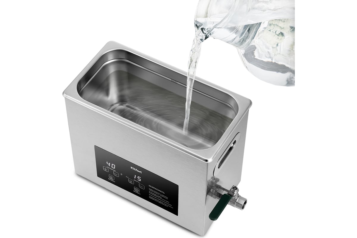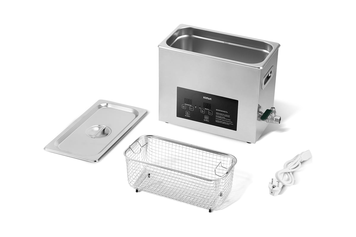 Ультразвуковая мойка КТ-6309 поможет эффективно очистить и продезинфицировать различные изделия из металла, пластика и стекла. Ультразвуковая очистка — способ очистки поверхности твёрдых тел в жидкости, при котором в жидкость вводятся ультразвуковые колебания. Применение ультразвука значительно ускоряет процесс очистки и повышает качество очистки. В качестве жидкости в ультразвуковой мойке можно использовать воду, а также специальные чистящие или дезинфицирующие растворы.