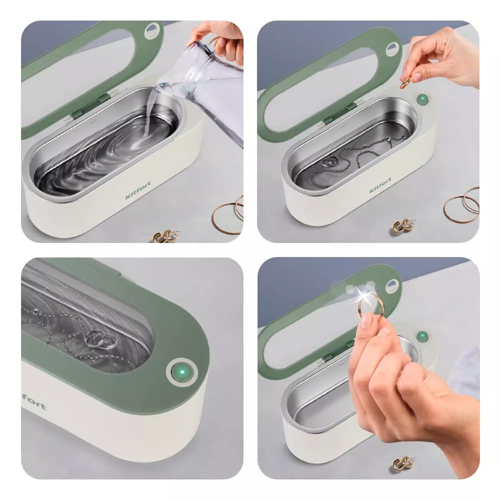 Ультразвуковая мойка КТ-6310 поможет эффективно очистить и продезинфицировать небольшие изделия из металла, пластика и стекла. В такой мойке вы можете очистить очки, ювелирные украшения, кисти, ортодонтические предметы и другое. Кавитация - это явление, когда в жидкости за короткое время образуются и тут же разрушаются пузырьки воздуха. Соприкасаясь с поверхностью обрабатываемых вещей, они разрываются, создавая множество ударных волн. Так происходит глубокая очистка предметов. Преимущество ультразвуковых моек — это возможность очищать предметы сложных форм. Налейте воду в мойку и положите украшения, зубные протезы, кисти для макияжа и прочее, включите прибор. Благодаря тщательной чистке удаляются даже въевшиеся загрязнения. Управление прибором осуществляется 1-ой кнопкой. Она включает и выключает мойку, а также переключает режимы работы 3 или 5 минут, после которого мойка автоматически отключается. Во время работы горит индикатор кнопки. Прибор спроектирован так, что он будет устойчивым на любой поверхности. Ножки устройства прорезинены, и устройство не будет скользить по гладким поверхностям или передавать вибрации на стол. Корпус мойки сделан из пластика, а резервуар, куда помещаются предметы для очистки - из нержавеющей стали. Прозрачная вставка на крышке позволит наблюдать за процессом очистки. КТ-6310 вместительна, но компактна, она не займёт много места у вас на столе. Применение ультразвука значительно ускоряет процесс и повышает качество очистки. В качестве жидкости, используемой в УЗ-мойке может быть вода, а также специальные чистящие или дезинфицирующие растворы.
