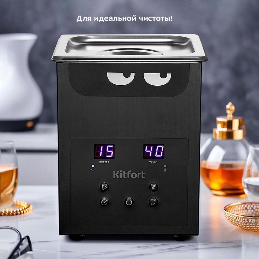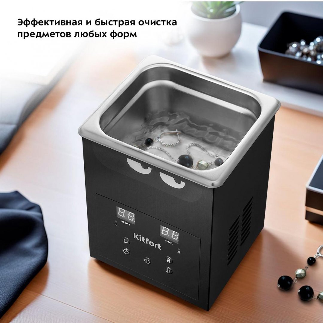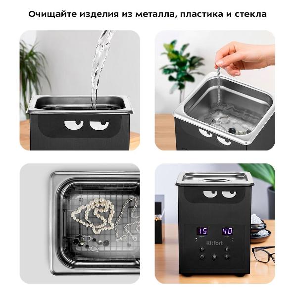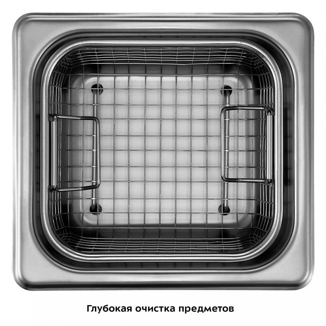 Ультразвуковая мойка КТ-6341 поможет эффективно очистить и продезинфицировать небольшие изделия из металла, пластика и стекла. Ультразвуковая очистка — способ очистки поверхности твёрдых тел в жидкости.Управление прибором осуществляется при помощи кнопок на панели управления. Вы можете выбрать время работы 5-30 минут с шагом 5 минут, после которого мойка автоматически отключается, и температуру нагрева воды 5-80 °С с шагом 5 °С.Кавитация — это явление, когда в жидкости за короткое время образуются и тут же разрушаются пузырьки воздуха. Соприкасаясь с поверхностью обрабатываемых вещей, они разрываются, создавая множество ударных волн. Так происходит глубокая очистка предметов.Налейте воду в мойку и положите в неё ювелирные украшения, зубные протезы, кисти для макияжа и прочее, а также включите прибор. Можно включить только нагрев, только УЗ-чистку или и нагрев, и чистку одновременно.Корпус прибора, крышка и резервуар сделаны из нержавеющей стали. В комплекте к ультразвуковой мойке идёт корзина. Благодаря большому размеру вы можете очищать более крупные предметы или много небольших предметов за 1 раз.Применение ультразвука значительно ускоряет процесс и повышает качество очистки. Главное преимущество ультразвуковых моек — это возможность очищать предметы сложных форм. В качестве жидкости в ультразвуковой мойке можно использовать воду.