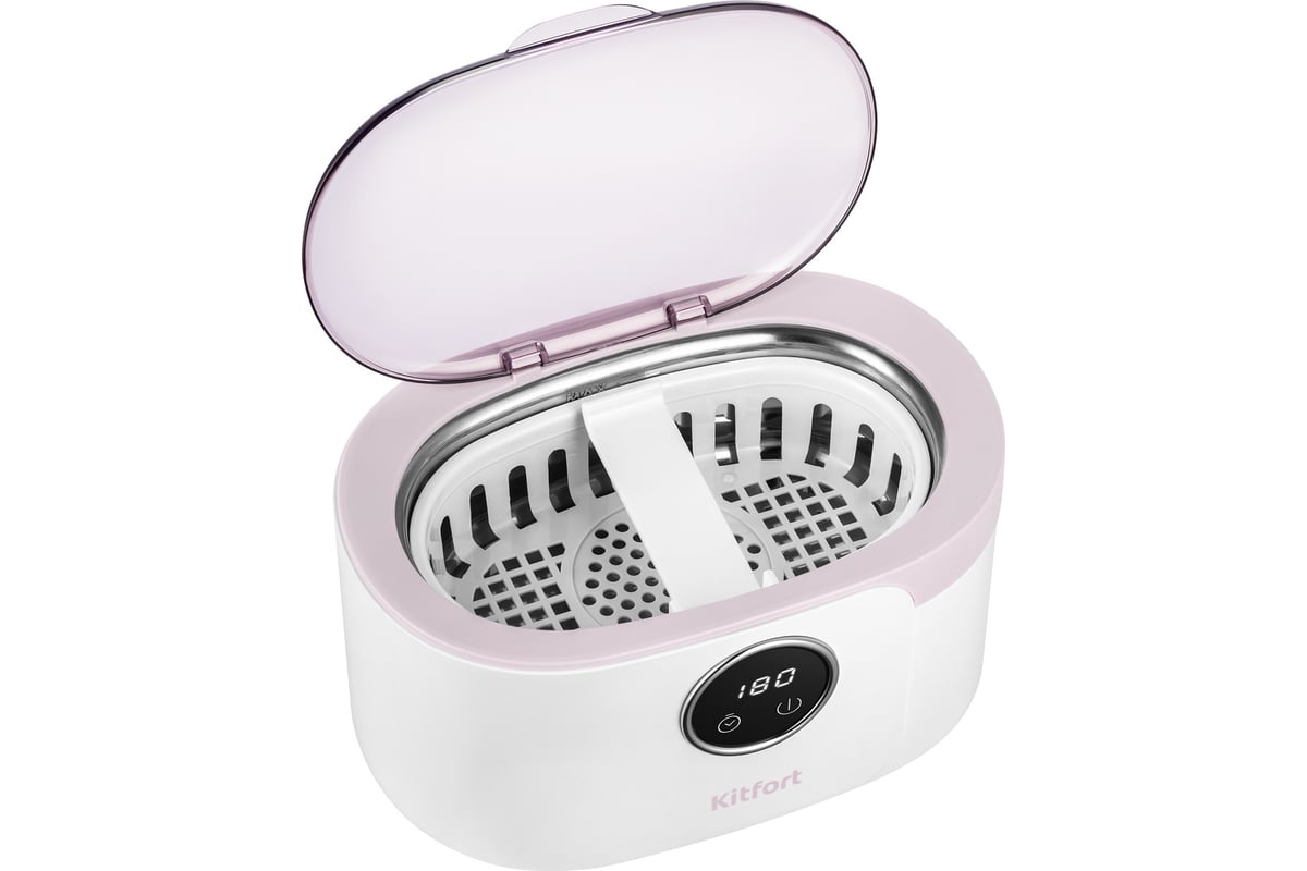 Корпус прибора сделан из пластика, а резервуар, в который помещаются предметы для очистки, — из нержавеющей стали. Прозрачнаякрышка позволит наблюдать за процессом очистки.