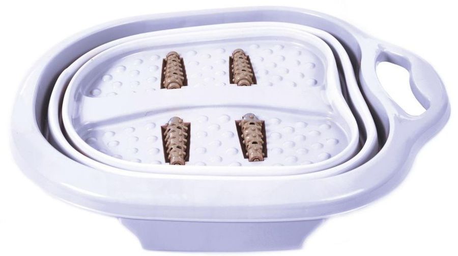 В конце дня вы испытываете усталость и тяжесть в ногах? Лучшее решение- попарить ноги с солью и душистой пеной! Предлагаем вашему вниманию новинку – компактную складную ванночку для ног. Вам больше не нужны громоздкие тазики: ванночка оснащена резиновым складным элементом и прочным пластиковым основанием для сохранения формы во время использования, а также устойчивыми ножками и удобной для переноски ручкой. Массажная поверхность и ролики с шипами позволят вам получить легкий массажный эффект, быстро восстановить силы и снять напряжение. Используйте складную ванночку также для домашнего педикюра и спа-процедур. В сложенном виде она займет совсем немного места на полке в ванной комнате или кладовке.