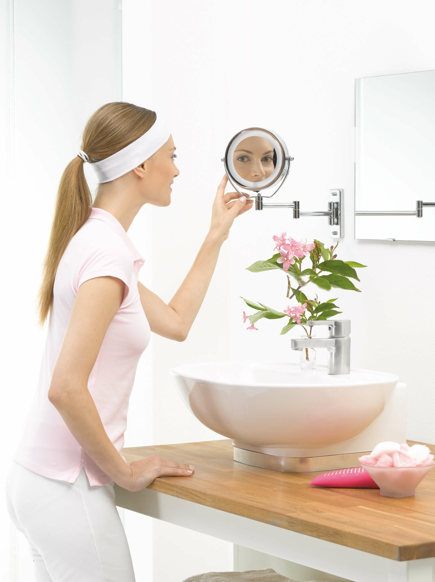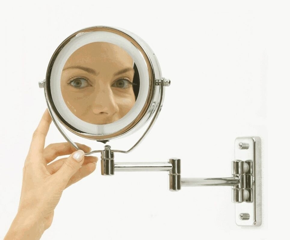 Настенное и настольное косметическое зеркало прекрасно подойдет для небольших ванных комнат. Его легко можно снять со стены и перенести в другую комнату или взять с собой в дорогу.