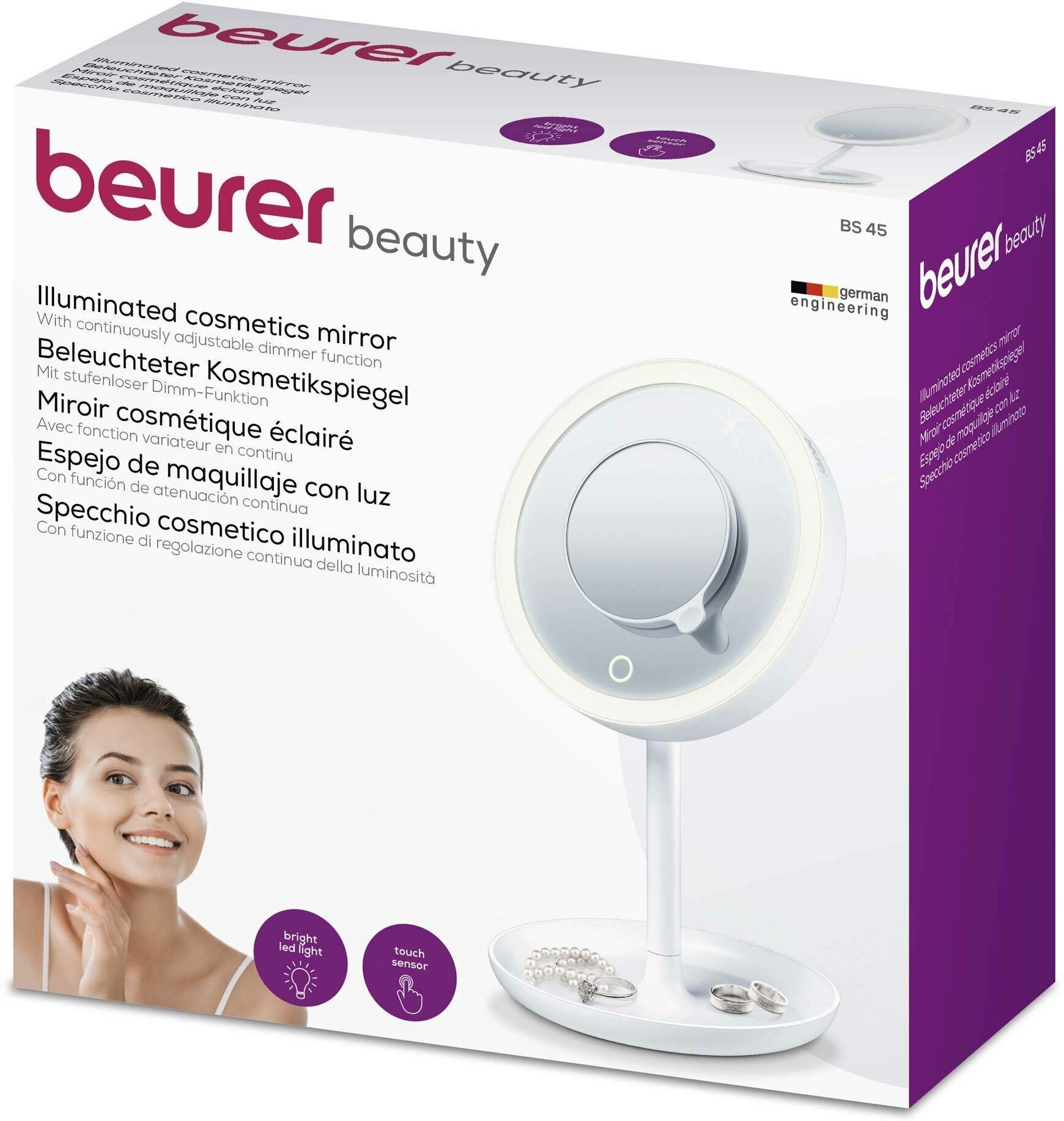 В комплект Beurer BS45 584.04 входят дополнительное магнитное зеркало с пятикратным увеличением и практичный футляр для хранения. Модель выполнена в белоснежном жемчужном цвете, который может стать приятным украшением вашей ванной комнаты.