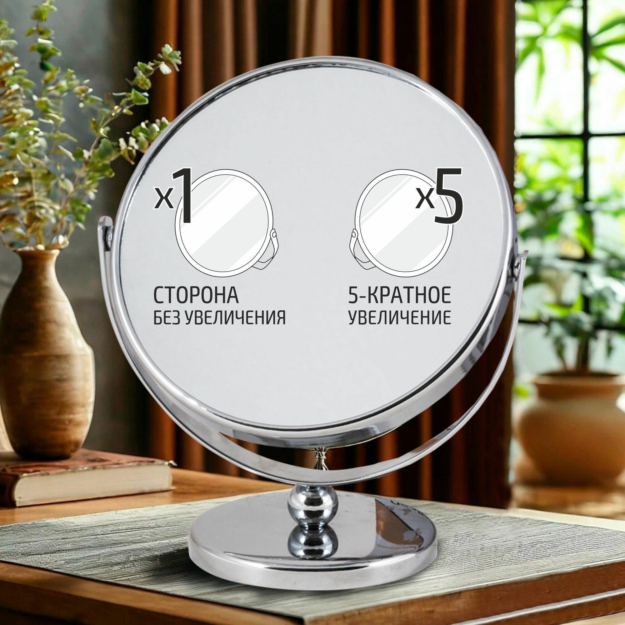 Двустороннее настольное зеркало отлично подойдет для нанесения макияжа и проведения процедур по уходу за кожей лица.
