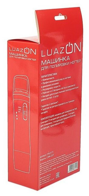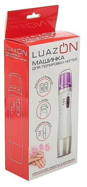 Аппарат для полировки ногтей LuazON LMM-007, 6 насадок, 2xАА (не в комплекте), белый. Аппарат для полировки ногтей LuazON LMM-007 поможет вам создать форму ногтей, отшлифовать поверхность, изменить толщину ногтевых пластин, придать блеск ногтям.