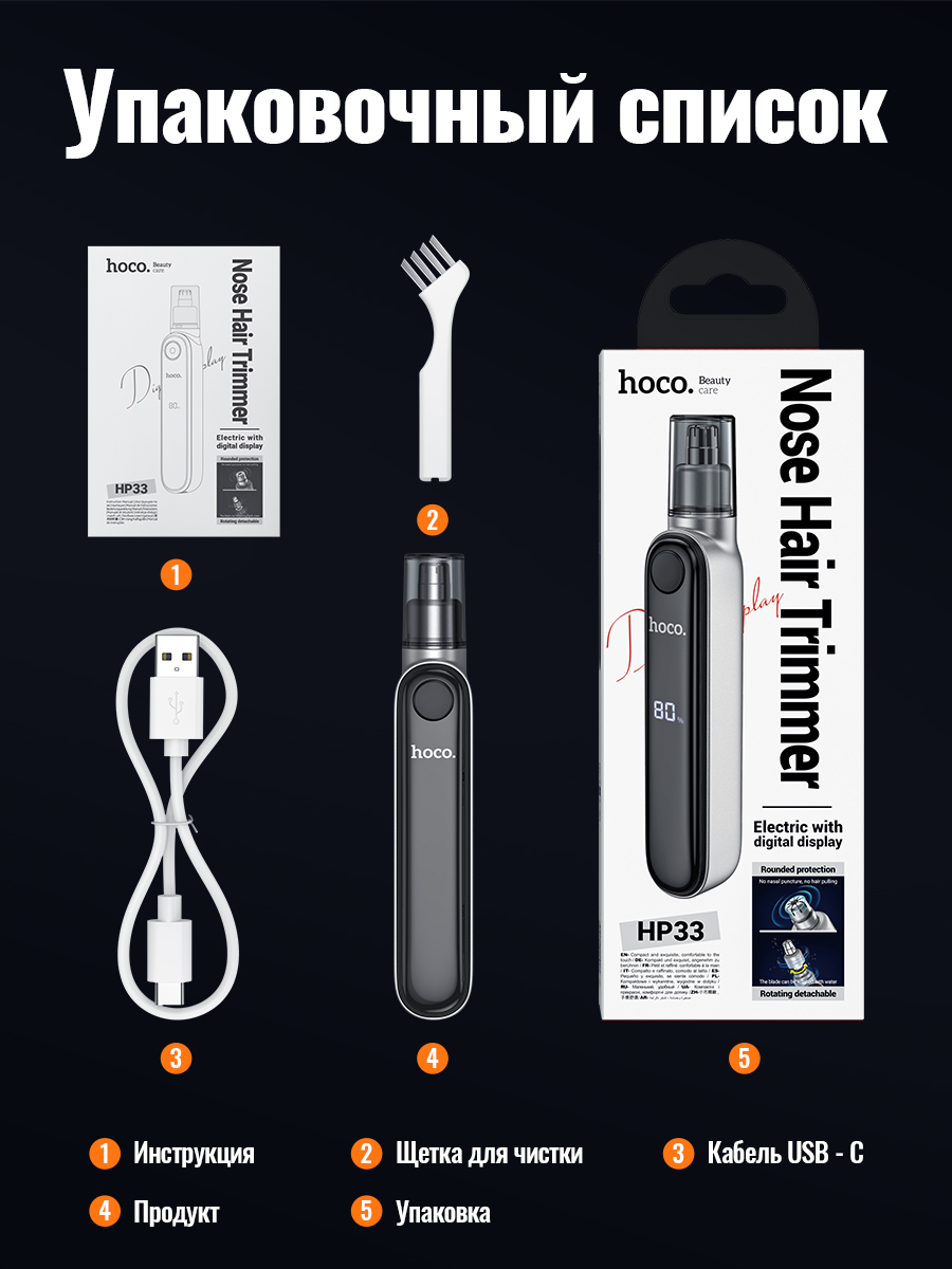 щетка для чистки, зарядный кабель.