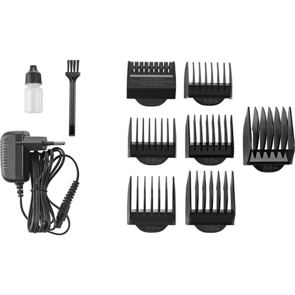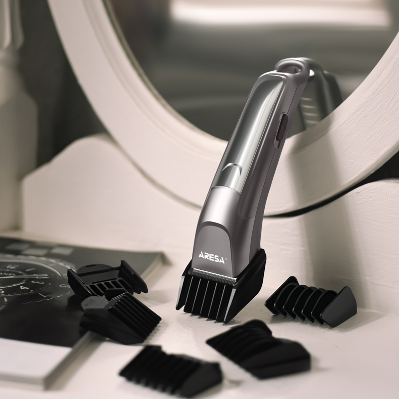 Прибор надежен в использовании и долговечен. Машинка для стрижки ARESA AR-1818 имеет 7 насадок от 1 до 30 мм. С помощью всего одного устройства, вы сможете создавать разнообразные стрижки - простые и модельные, придать необходимую длину и форму бороде и всегда выглядеть отлично. Прибор работает от аккумулятора 150 минут, полная зарядка устройства происходит за 2 часов. Благодаря стильному дизайну прибор может стать отличным подарком.