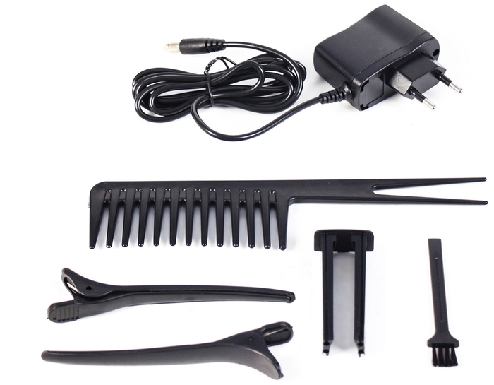 2 насадки (3-6 мм), зажимы для волос, сетевой адаптер, щетка, расческа
