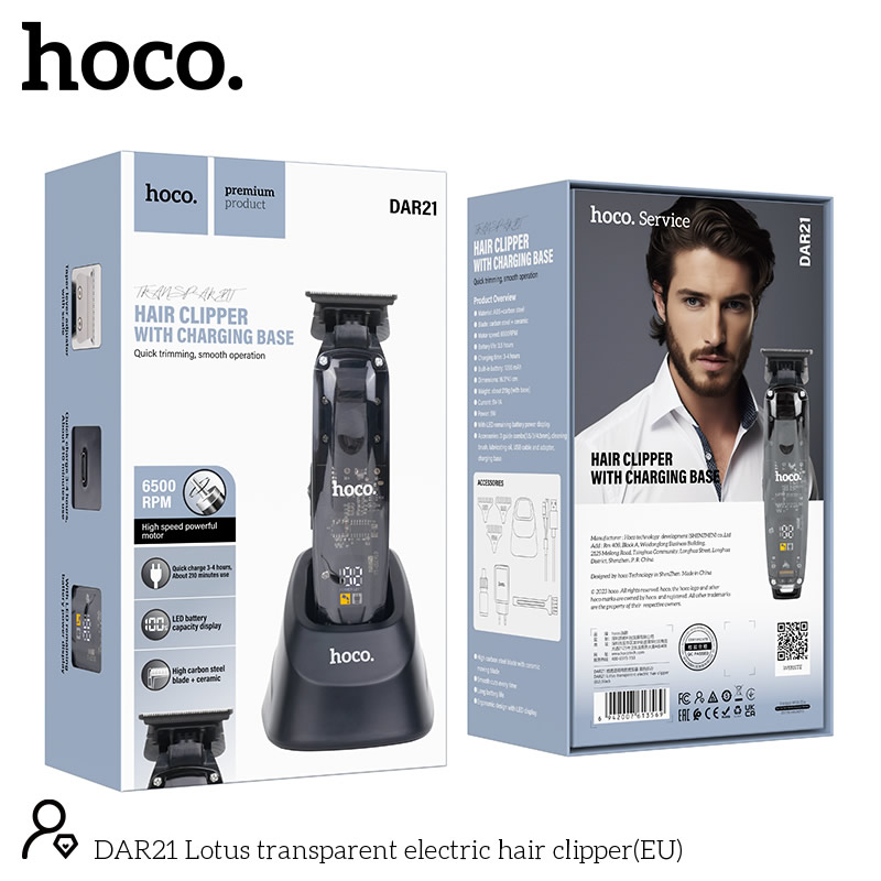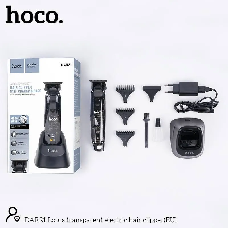 6. Аксессуары: 4 расчески для позиционирования (1.5/3/4.5/6/10/ 13 мм, бутылка с маслом, щетка для чистки, кабель для зарядки, адаптер, подставка для зарядки